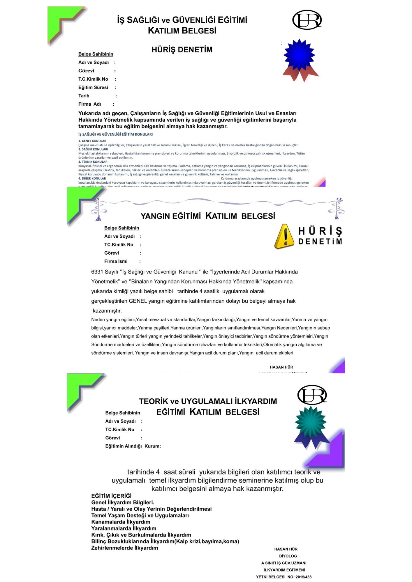 MESLEKİ YETERLİLİK BELGESİ (SERTİFİKASI) VERDİĞİMİZ MESLEKLER